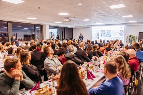 Zu diesem besonderen Anlass kochten die Nachwuchsfachkräfte dieses Jahr wieder groß auf: Mit einem, unter der professionellen Anleitung von Gordana Podgorac – Leiterin F&B Catering im Montforthaus Feldkirch – speziell für diesen Anlass zubereiteten, Fünf-Gänge-Menü, eroberten die Lehrlinge die Herzen und Gaumen aller Anwesenden. Den festlichen Rahmen genossen neben den Verwandten und Lehrverantwortlichen nicht nur die Unternehmensleitung der Getzner Textil AG sowie der Geschäftsführer der Getzner-Holding, Markus Comploj, sondern darüber hinaus Landeshauptmann Markus Wallner, Bürgermeister Simon Tschann und Vertreter der Landesberufsschulen sowie polytechnischen Lehreinrichtungen. Für großes Gelächter und ausgelassene Stimmung sorgte das beschwingte Kabarett-Programm „Buggla“ der Ländle-Vorzeige-Comedians Markus Lins und Manfred Kräutler.