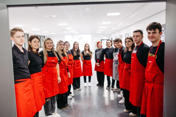 Lehrlinge schwingen die Kochlöffel