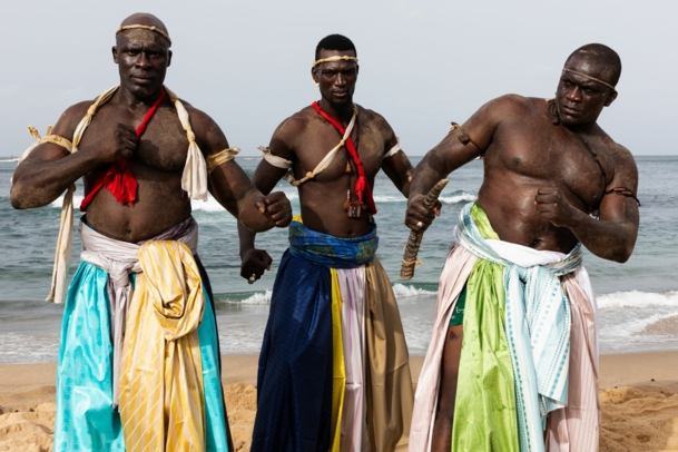 „La Lutte“ is the national sport in Senegal and is similar to Swiss wrestling („Schwingen“). Impressive photos were taken on the beach in Dakar, showing the athletes in damask from Getzner Textil.